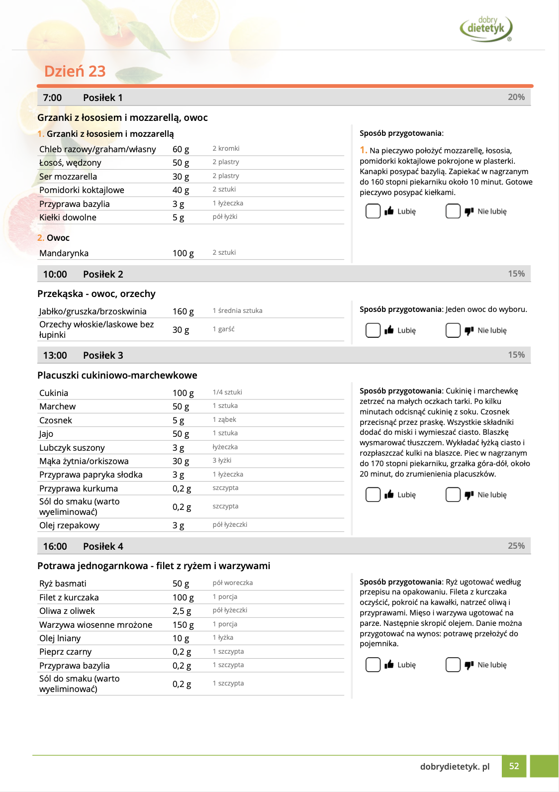 • Liczba posiłków w ciągu dnia: 5